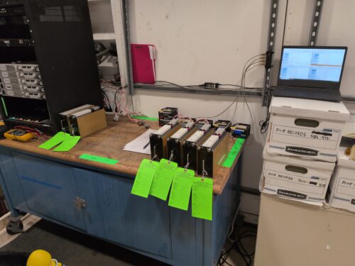 With the trays fully populated, Thursday shifted elsewhere. The spare cell storage boxes were modified to make it easier to store and remove spare cells. And work began on sealing up the pallets of old cells for shipment.