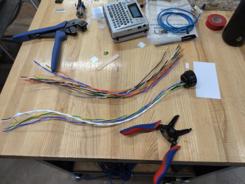 Friday was a mix of tasks. A pair of camera PBOF cables needed shortening to remove damaged sections, with the connectors replaced in the process. The rest of the day went toward finishing up the used cell pallets and getting them secured. Once sealed, the pallets were moved out to clear space in the shop for the following week, when a specialized metrology company was arriving to create a precision 3D scan of the sphere.