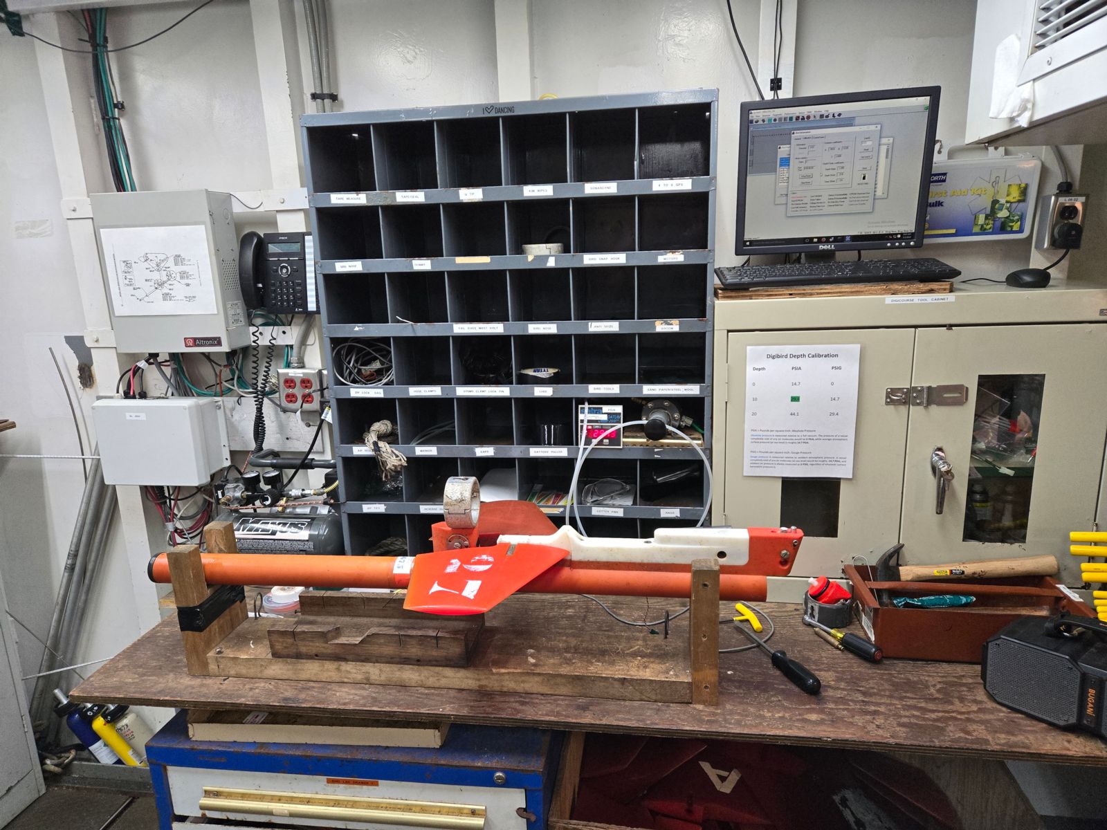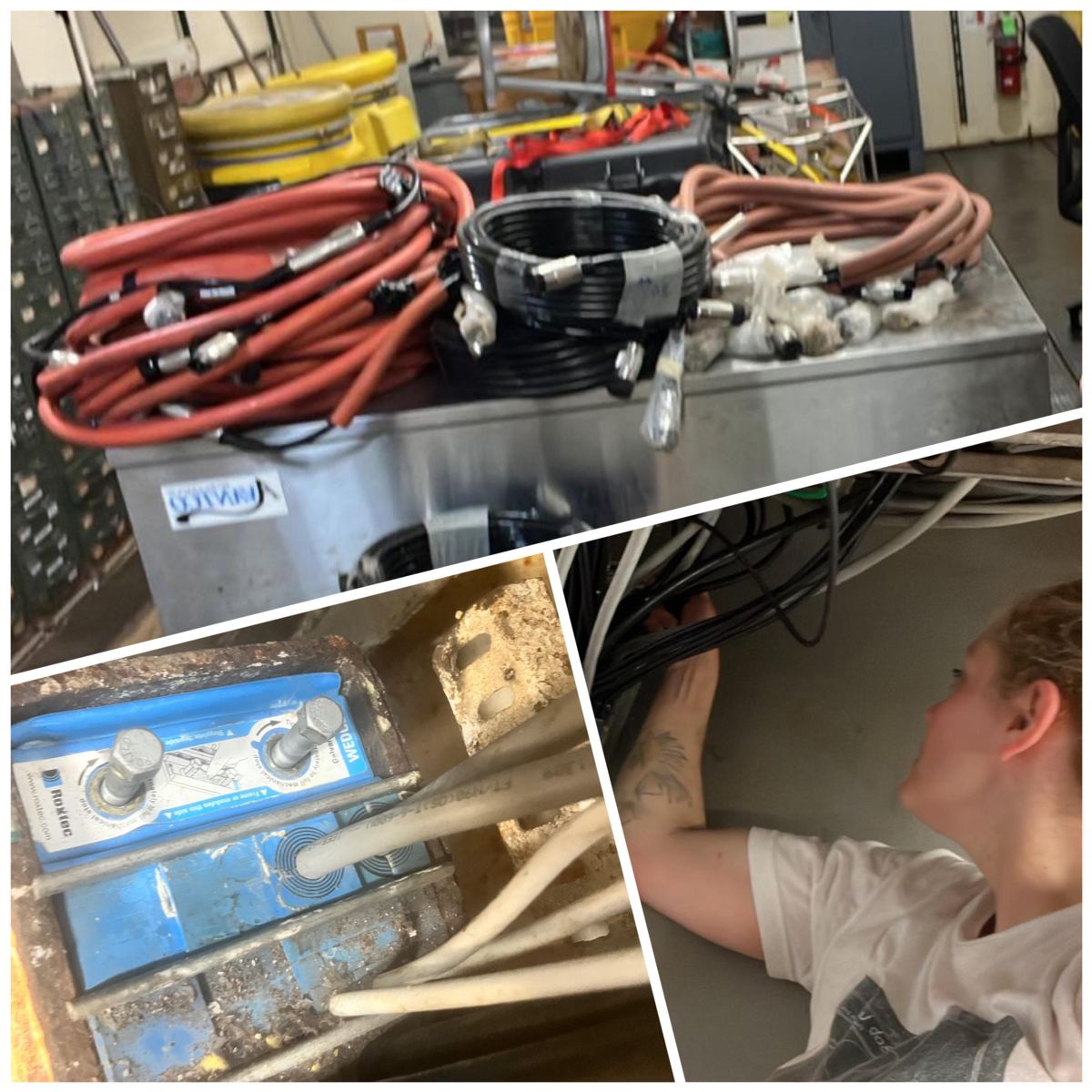May 4: Worked with marine tech program coordinator Cody to learn step-by-step for digibird inspection/calibration/troubleshooting, both in visual and data system. Helped intern Ray with jumper cable project; cable labeling, taping, coiling, and organizing. Assisted marine technician Riley with the server racks; drilling, organizing, zip-tying, lifting, ratcheting, vacuuming, pulling apart, putting together, and labeling various cords and racks.