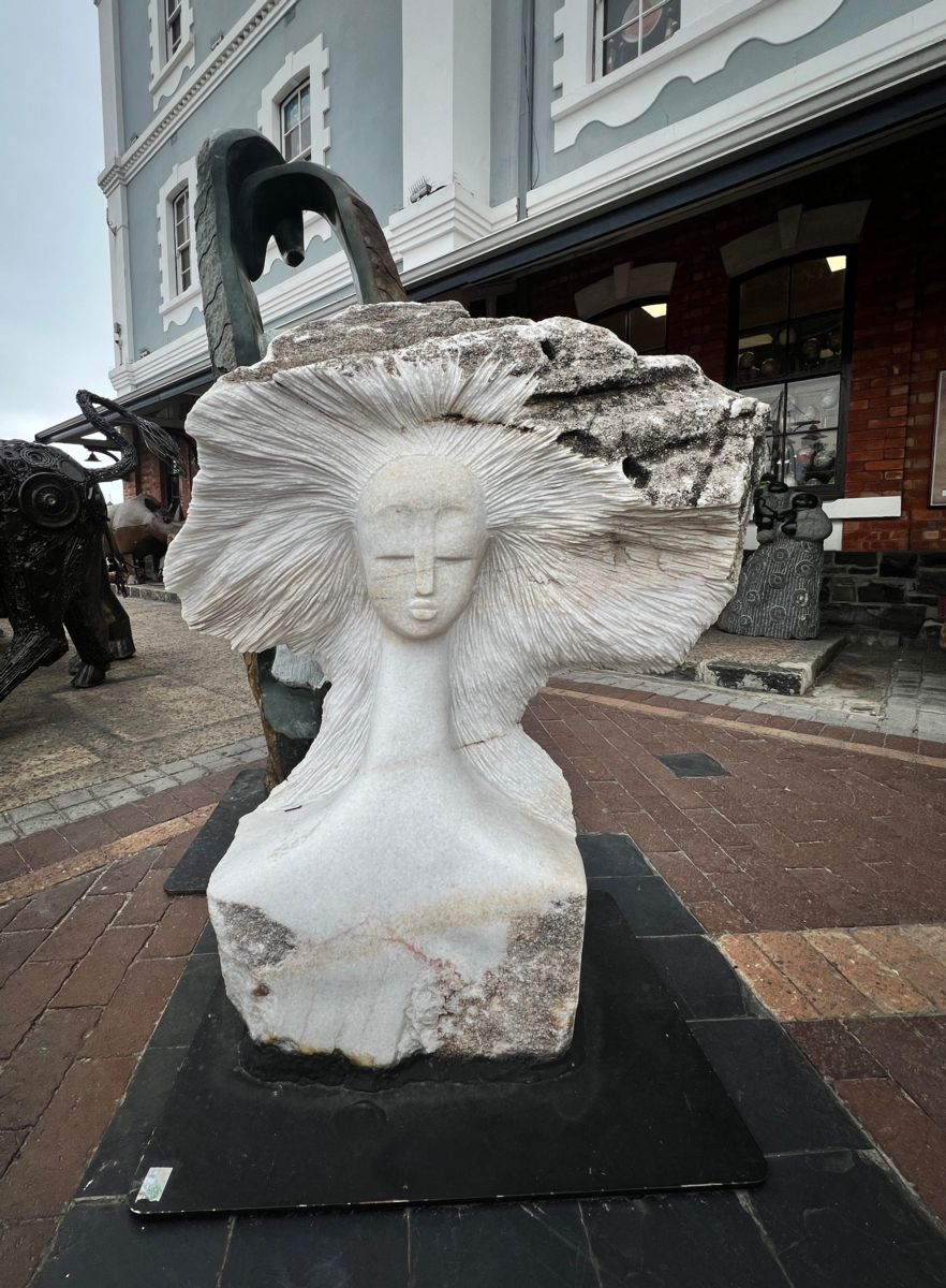 Additonally, we went to the South Africa Trading Post and saw some incredible artworks. Here is a sculpture in front of the trading post overlooking the bay…