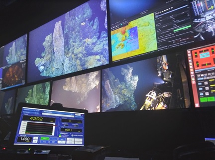 No map is better than a bad map. This may sound a bit silly, but it has been said a few times over the last few days. The navigation system has been going in and out, so when it tends to be “glitchy” and not display all of the data, we fly without it. If you were to operate with inaccurate readings and presume what is being shown is correct, catastrophe could follow! Especially in this environment. At one point, the seafloor went from 1547 meters up to almost 1450 meters! If you were to have insufficient navigation/mapping and set an auto course and depth, a collision would most definitely occur and potentially result in vehicle devastation. The 100-meter incline was abrupt, like climbing the side of a cliff. Though it was an unusual occurrence on this transit, it is a very real example of a possible event which could occur.