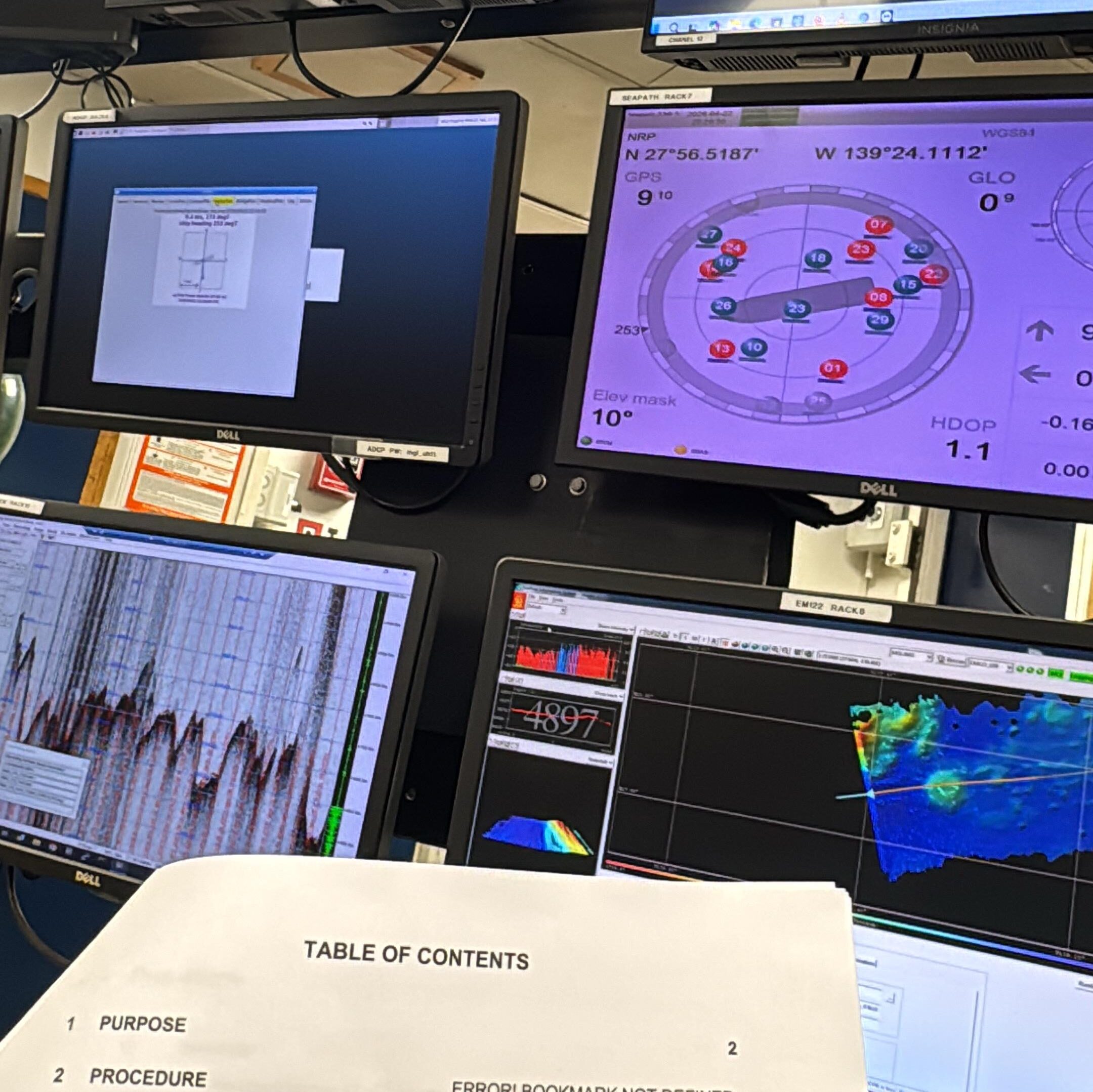 This first week of the transit from san Diego to Honolulu has been highly demanding and busy, we began the week with securing miscellaneous equipment while beginning our transit out of the bay and into deeper waters. Throughout this time we took advantage of the calm waves to add fixtures in both the ship’s wet-lab and dry-lab that would ensure better access and protection to the science team’s equipment, especially considering our expectation of encountering rough weather within the next few days. Once out of the coast, we began powering the ship’s multi-beam echosounder (an EM122 by Kongsberg), ‘CHRP’ ADCP (3260 Echosounder by Knudsen) and SeaBird SBE systems. Shortly after, we noticed incongruencies on the live data between the ADCP and echosounder’s depth readings and began early troubleshooting efforts which were finalized by that afternoon.