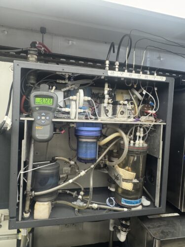 During the next day we deployed our first SOFAR buoy at 5am and as part of our daily checks ensured that the temperatures of our sample-housing refrigerator units remained nominal. As part of an ongoing project to improve the infrastructure of our pCO2 measuring system we also began mounting a dedicated bracket for it’s dedicated power station, that same afternoon we would also begin a lengthy process to activate and at times de-airlock this delicate gas-mixture dependent piece of equipment.